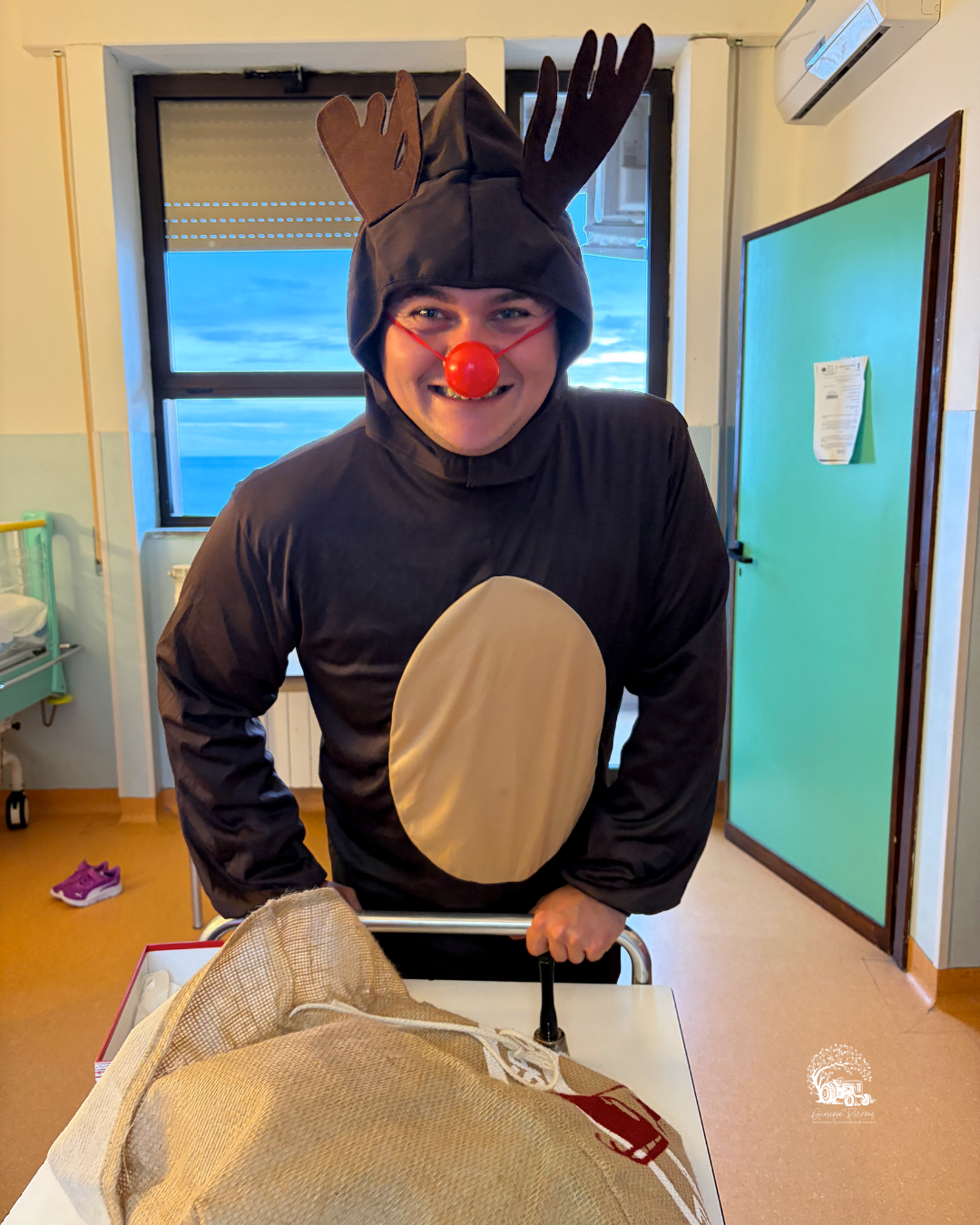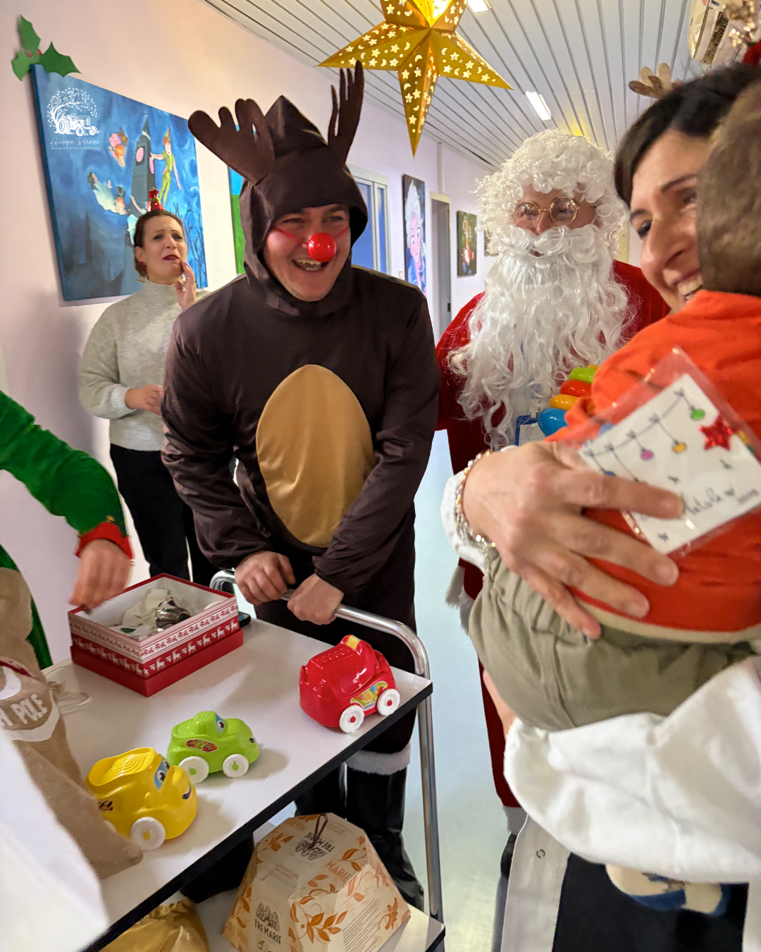 Tra lo stupore e gli occhi pieni di meraviglia dei bambini, l’elfo, la babbetta, Rudolph e ovviamente Babbo Natale (gli unici e originali) hanno attraversato il reparto regalando musica, giocattoli, sorrisi, abbracci e un po’ dell’atmosfera natalizia che tutti i bambini del mondo meritano